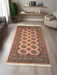 Handcrafted by master weavers in Pakistan, this Bokhara rug is a beautiful expression of timeless artistry and meticulous technique. The design features the classic Tekke “gul” motifs arranged in symmetrical rows, set against a rich red background with ivory and black accents—a hallmark of the Bokhara style.