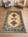 Design: Features bold tribal and geometric motifs in multi colors, framed with classic Caucasian borders.