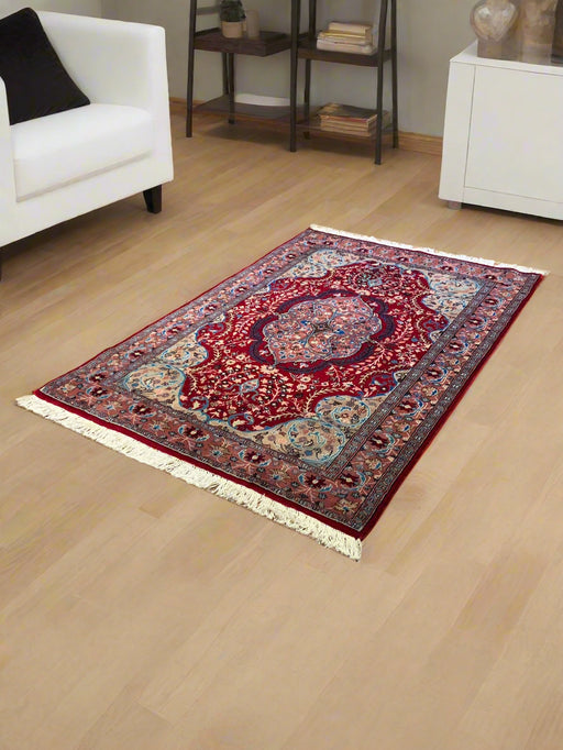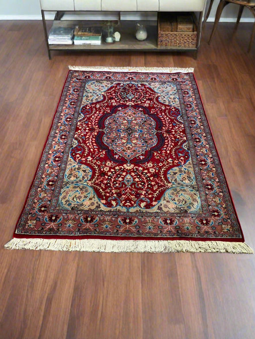 Exquisite 100% Silk Persian Design Rug – Elegant and Luxurious, size 4' x 6' (H)