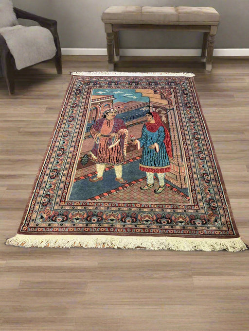 Hand-Knotted Pakistan Kashmiri Silk Wool Blend Rug, size 4' 2" x 6' ( E)
