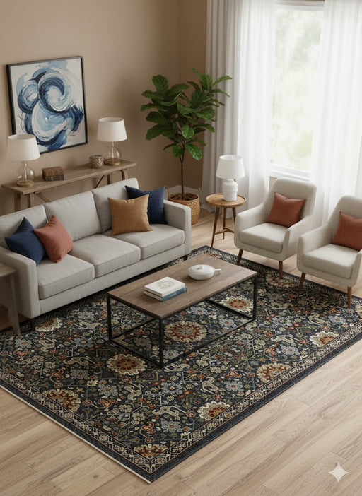 Medalia Area Rug - Navy Blue / Burnt Red / Orange 7 Sizes