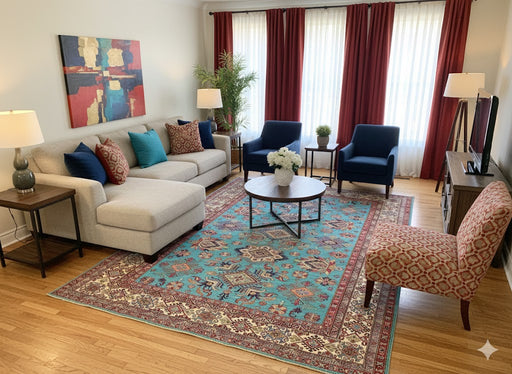 Original price $ 6,720.00Current price $ 3,091.20Bring timeless character and bold elegance to your home with this fine hand-knotted Kazak rug, crafted in Pakistan using 100% hand-spun wool and a...