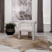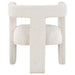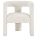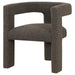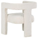 Wrapped entirely in soft bouclé, this accent chair brings comfort and style together in one seamless form. The seat, back, and arms flow into one another with smooth, sculpted curves that create a calm, inviting shape. Its monochromatic look gives it a modern, minimalist feel, while the rich texture adds warmth and character. Whether placed in a living room, bedroom, or office, this chair feels like a small sanctuary of comfort