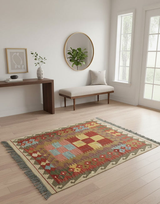Afghan Kilim Handwoven flatweave Rug 3' 4" x 3' 5"