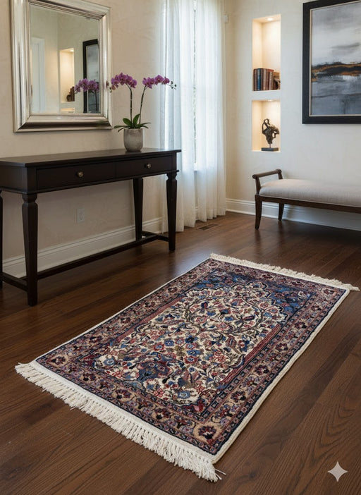 Hand-Knotted Pakistan Kashmiri Silk Wool Blend Rug, size 2' 7" x 4" (E)