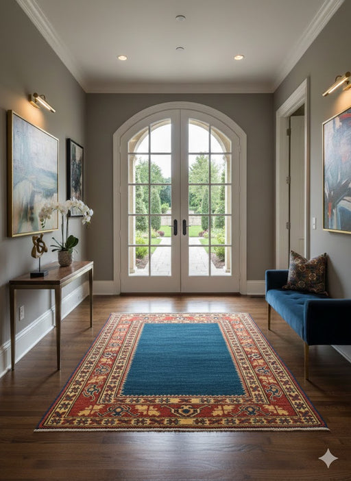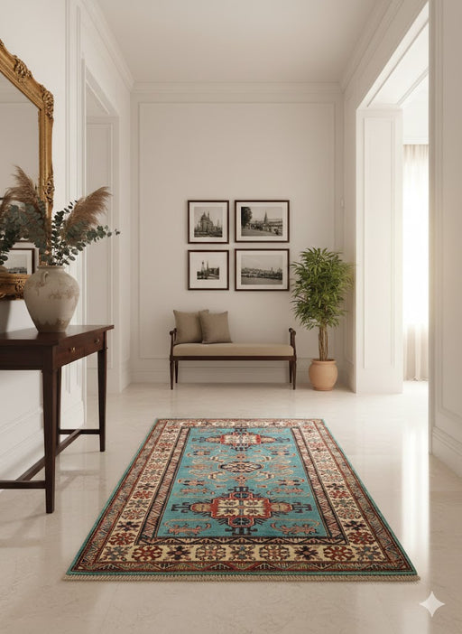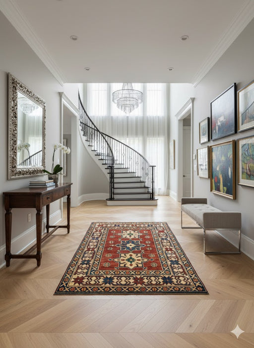 Original price $ 1,225.00Current price $ 563.50Bring timeless character and bold elegance to your home with this fine hand-knotted Kazak rug, crafted in Pakistan using 100% hand-spun wool and a...
