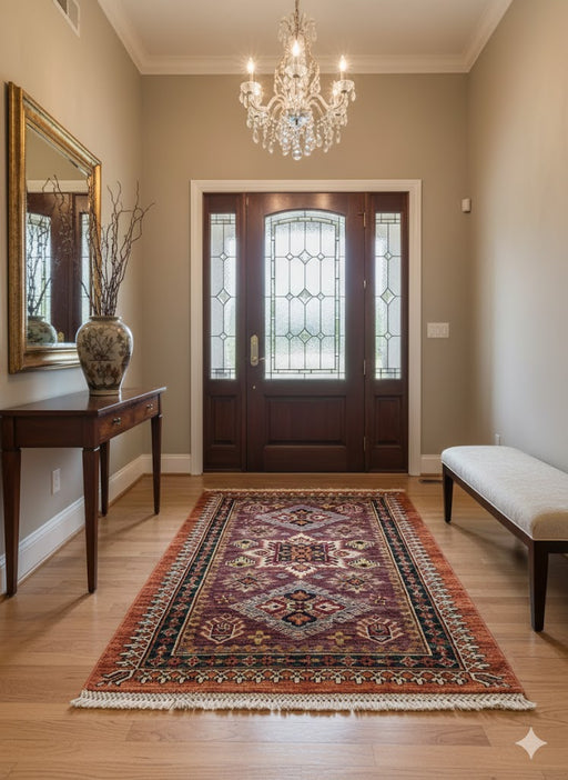 Original price $ 1,050.00Current price $ 483.00Bring timeless character and bold elegance to your home with this fine hand-knotted Kazak rug, crafted in Pakistan using 100% hand-spun wool and a...