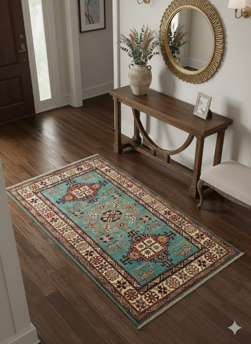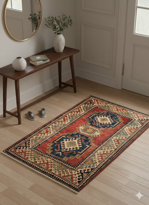 Hand-Knotted Vegetable Dye Kazak Rug from Pakistan, size 3' 5" x 5"