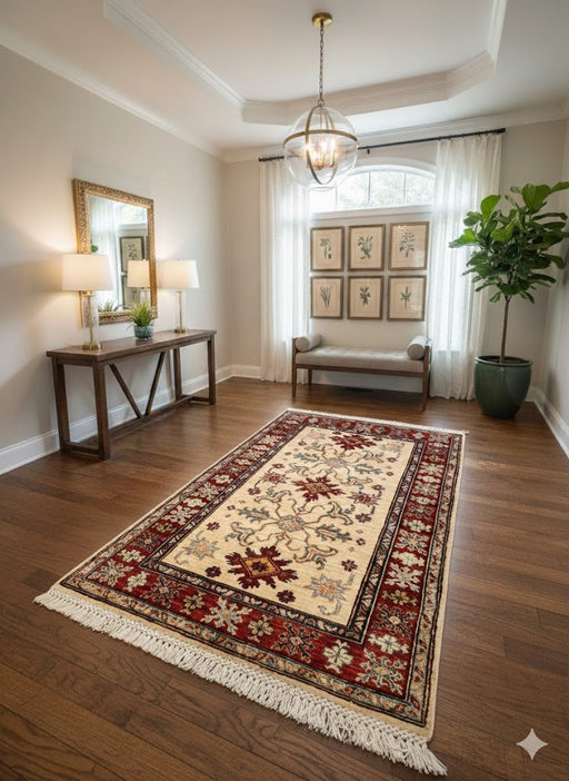 Hand-Knotted Vegetable Dye Kazak Rug from Pakistan, size 3' 4" x 5"