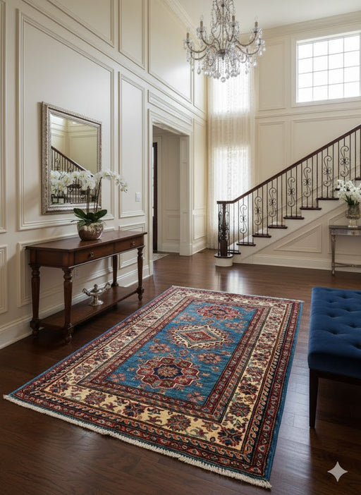 Original price $ 1,247.40Current price $ 573.80Bring timeless character and bold elegance to your home with this fine hand-knotted Kazak rug, crafted in Pakistan using 100% hand-spun wool and a...