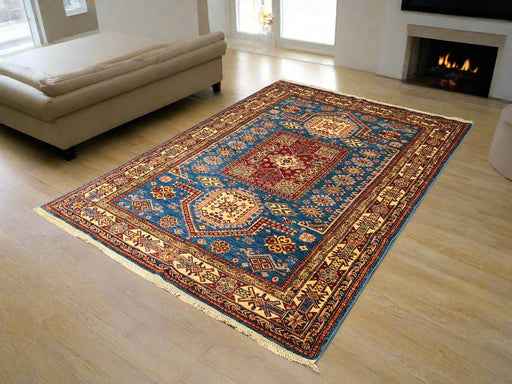 Hand-Knotted Vegetable Dye Kazak Rug from Pakistan, size 4' 7" x 6' 2"