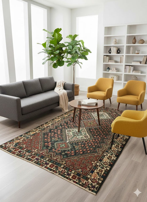 Timeless Beauty, Woven by Hand. Antique Persian Afshar Rug, size 5' 2" x 6' 2" (F)