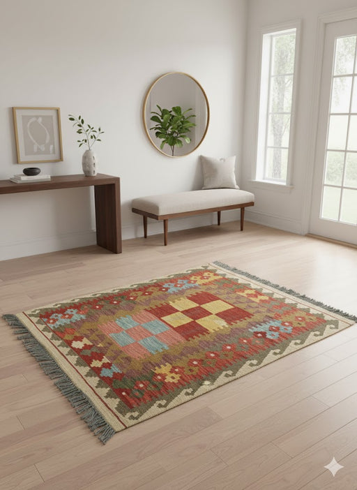 Afghan Kilim Handwoven flatweave Rug 3' 4" x 3' 5"