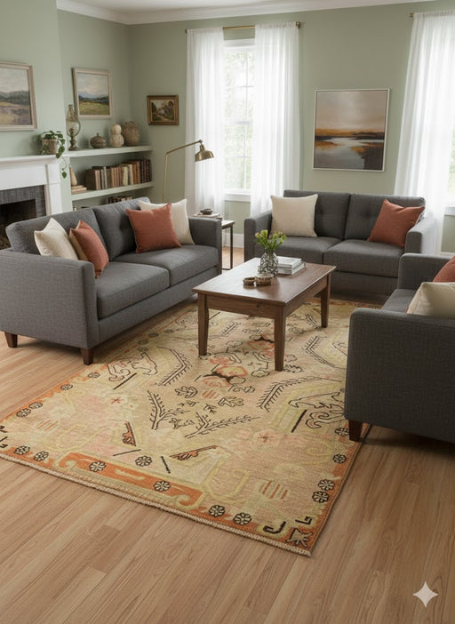 Original price $ 7,500.00Current price $ 3,634.00Step into history with this exquisite Antique Khotan Samarkand rug, a rare treasure woven by master artisans from the heart of Central Asia. Origi...
