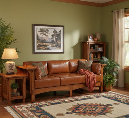 Mission Crofter Sofa - Solid Quarter Sawn Oak and Leather Cushions