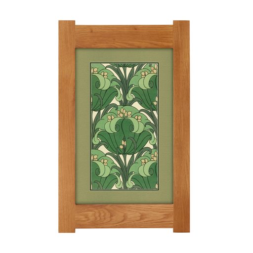 Arts & Crafts Mission Oak Framed Art with Green Floral Harmony
