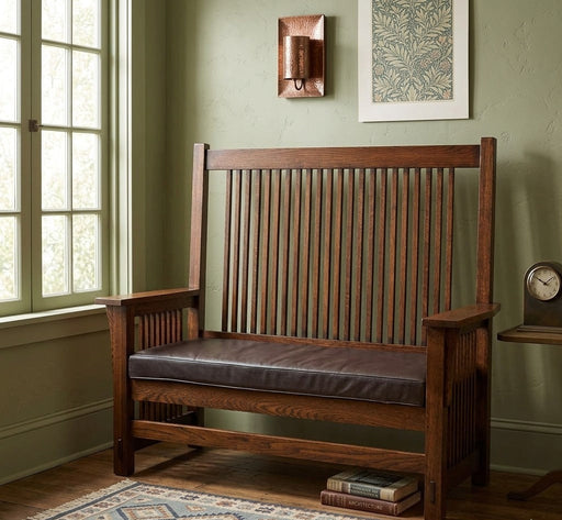 Mission / Craftsman Cubic Slat Side Love Seat - Chestnut Brown Leather