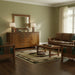 - Solid quarter sawn white oak with a medium-dark brown stain