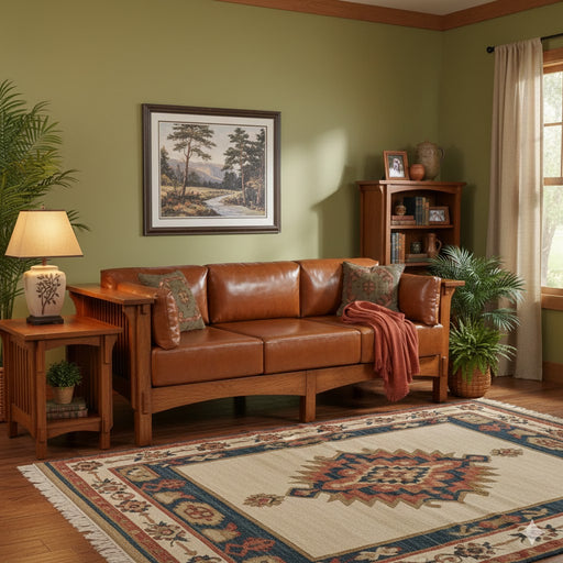 Mission Crofter Sofa - Solid Quarter Sawn Oak and Leather Cushions
