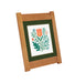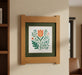 A charming and colorful floral design featuring a vibrant tulip and leaves. Framed in natural wood with a deep green mat, it adds a fresh, playful touch to any space.