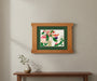 This lively Arts and Crafts framed piece features bright fuchsia flowers, surrounded by lush green leaves, offering a pop of color. Framed with a warm wood frame and green mat, it brings a fresh, elegant touch to any space.