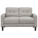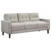 Elevate your compact living space with the Soft Spot 3-piece sofa set, blending timeless style and modern comfort. Designed with clean track arms, self-welt detailing, and grid-tufted back cushions, each piece offers a refined, tailored look. The pocket coil seating ensures lasting support, while the soft performance fabric upholstery makes upkeep effortless. Finished with tall tapered brown legs, this set adds a touch of mid-century sophistication to any home.