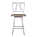 Sit in comfort and style with the Nuvra Farm counter height swivel chair. Crafted from rubberwood solids and veneers, this chair showcases a charming weathered white and sandstone finish that complements both classic and modern interiors.