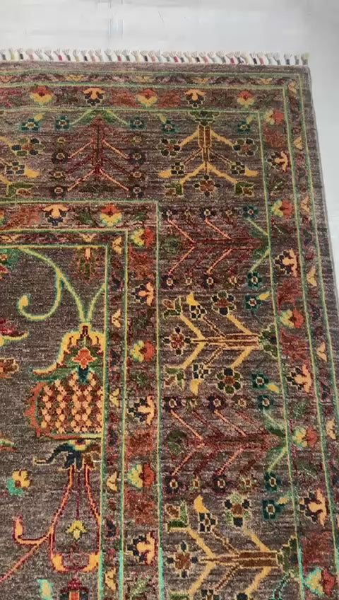 Discover timeless elegance with this authentic Pakistani Chobi rug, hand-knotted using 100% hand-spun wool and natural vegetable dyes. Originating from the rugged tribal regions of Pakistan, Chobi rugs (also known as “Ziegler” rugs) are renowned for their soft tones, antique look, and refined craftsmanship.