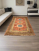 Design: Features intricate geometric and floral motifs typical of Khotan carpets, rendered in a rich, earthy color palette.