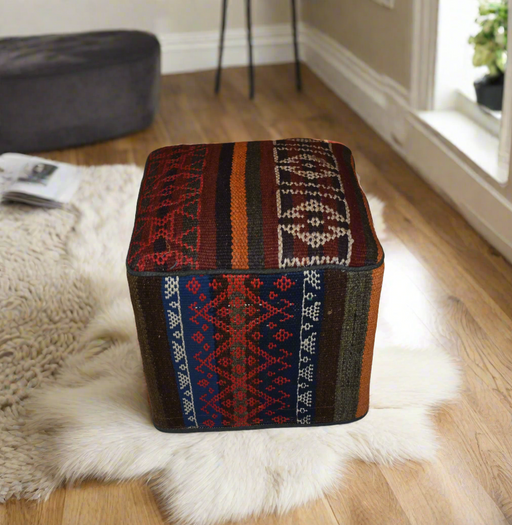 One of a Kind Kilim Rug Pouf Ottoman foot stool - #210