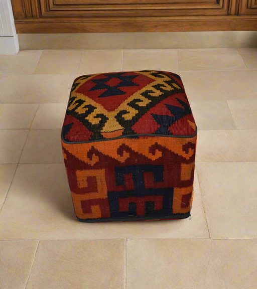 One of a Kind Kilim Rug Pouf Ottoman foot stool - #185