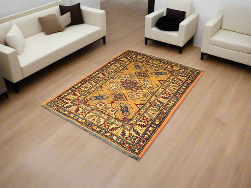 Hand-Knotted Vegetable Dye Kazak Rug from Pakistan, 3' 4" x 5' 3"