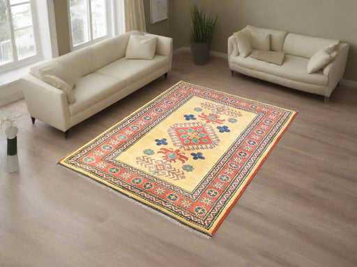 Hand-Knotted Vegetable Dye Kazak Rug from Pakistan, 3' 6" x 5'