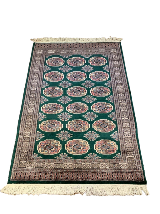 Hand-Knotted Pakistani Wool Rug, Tribal/Floral Design, size 2' 7" x 4"