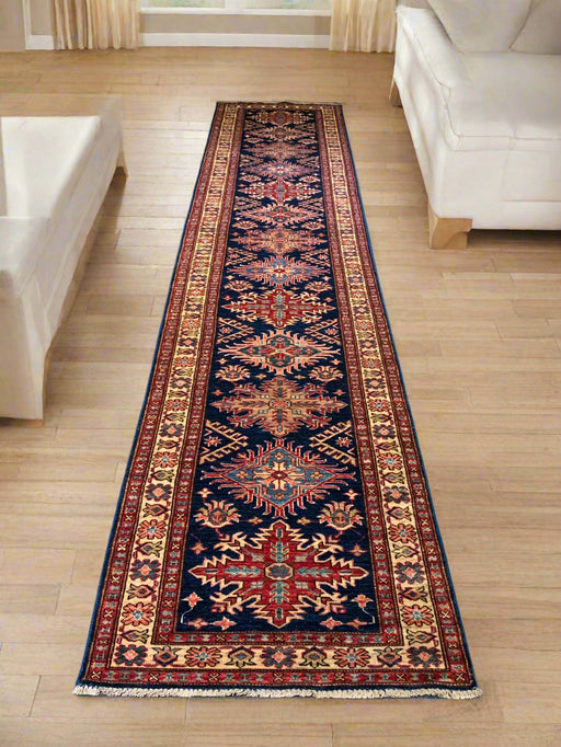 Hand-Knotted Vegetable Dye Kazak Rug from Pakistan, size 2' 8" x 13' 2"