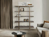 Elevate your space with the modern Onix Bookcase. Designed with clean lines and a sculptural silhouette, it features solid mango wood tops and shelves finished in a rich multi-step cocoa brown lacquer. A striking gold metal frame adds a bold, contemporary touch while providing exceptional stability through mortise-and-tenon construction. With multiple fixed shelves, this bookcase offers generous storage and display space for any room.