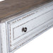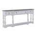 Elevate your entryway or living space with the Artemis collection 72" Hall Console Table. Crafted from Rubberwood solids with White Oak and Birch veneers, it features an antique white finish with a weathered brown top. Three full-extension drawers and a spacious lower shelf offer timeless storage and display versatility.
