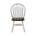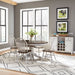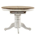Bring classic farmhouse charm to your home with this solid rubberwood dining set. The round pedestal table extends to an oval with a 15" butterfly leaf, while the antique white base and honey top add a warm, timeless look. Four Windsor side chairs feature contoured seats and splayed legs for comfort and stability perfect for cozy dining spaces.