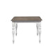 Gather in style with the Artemis collection, farmhouse style dining table, crafted of poplar solids with white oak and birch veneers. Featuring a fancy face top in weathered brown with whitewash, a 12" removable leaf, and heavy turned legs, this table blends European charm with timeless design.