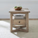 Add architectural charm to your living space with the Harlan Place End Table. Crafted from Rubberwood solids and Rustic Flat Cut Birch veneers in a warm Barley Buff finish, it features intersecting block legs with soft chamfered edges, a floating-style drawer with open shelf, and a custom Dark Iron faceted knob—perfect for storage or display.