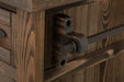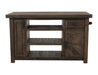 The Freya Collection combines rustic charm with sturdy mixed-wood craftsmanship. The Kitchen Island offers two drawers, open shelves, a cabinet door, and an iron towel bar, all in a lightly distressed brown finish that highlights natural wood grain. The matching Stools feature round mixed-wood seats with metal trim and a stable metal footrest, perfectly complementing the island together, they create a cohesive, functional, and timeless addition to any farmhouse-style kitchen.