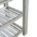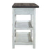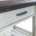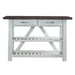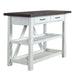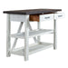 Indulge in style and function with the Farmhouse server. Crafted of rubberwood solids and veneers in a two-tone white and wood-tone finish, this piece features a solid wood top, two felt-lined storage drawers with pewter pulls, and open shelving for added storage. Distressed detailing and diagonal back slats complete its timeless farmhouse charm.