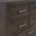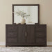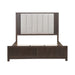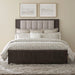 Elevate your space with the Midnight Loft Solid Wood Bedroom Set, blending clean lines with soft textures for a refined modern look. Crafted from rubberwood solids with a rich Caffe finish, this set features channeled gray upholstered panels, reeded molding, and a raised block base for a contemporary touch. The dresser and chest offer generous storage with wood-framed drawers and adjustable shelving, while the nightstand includes a built-in charging station with USB-A, USB-C, and AC ports—perfect for modern living.