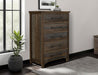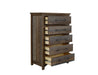 Elevate your bedroom with the Prestio collection, a perfect blend of rustic charm and modern sophistication. Crafted from pine and poplar with a wire-brushed texture, each piece features a multi-step lacquer finish in rich brown and gray tones. Mortise and tenon construction ensures durability, while custom metal handles and iron center pulls add a subtle industrial touch.