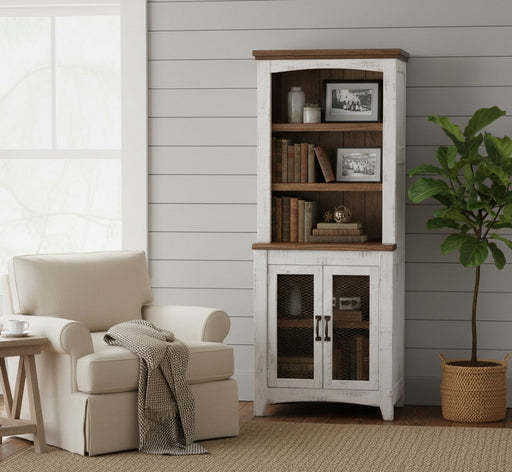 • Greenview Mesh Door Bookcase - Distressed White - Crafters and Weavers
