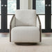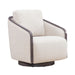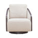 Designed for both comfort and elegance, this chair showcases a wood trim frame, contoured back, and sloping arms that cradle your body for ultimate relaxation. The swivel mechanism adds functionality, while the removable back cushion offers easy maintenance and personalized comfort.