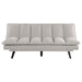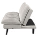 This modern Convertible Sofa Bed adds style and versatility to any space. Soft neutral upholstery, tufted cushions, and angled arms create a cozy, contemporary look. The smooth lay-flat mechanism transforms it into a bed in seconds, while splayed black legs with protective glides offer a sleek, durable finish.