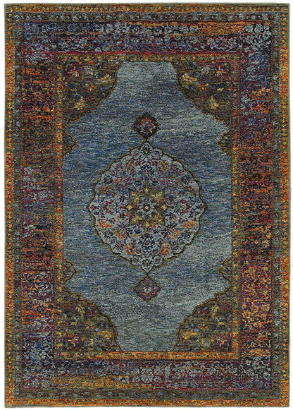 • Medalia Area Rug - Orange. Buttermilk Yellow. Light blue gray