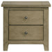 Enhance your bedroom with this two-drawer vineyard oak nightstand, combining timeless style and practical storage. Crafted from rubberwood and engineered veneer, it features smooth ball-bearing drawers, antique nickel knobs, and a warm oak finish, making it a perfect bedside companion.