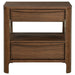 Combine style and functionality with this transitional wooden nightstand. Featuring two drawers top lined with felt and cedar for safe storage, plus a central open shelf for books or décor. Rounded corners and walnut veneer add warmth and a refined touch to any bedroom